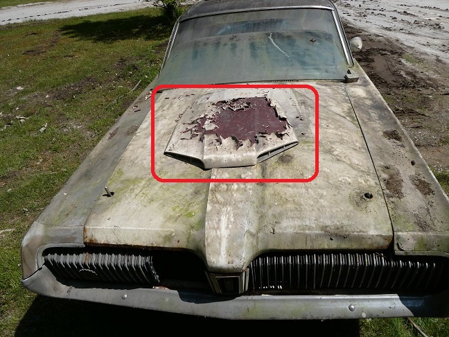 The hood scoops are non-functional (except for the the 14 regular production XR7-G cars that came later). They were made by A.O. Smith who also made the 1968 and later Shelby fiberglass pieces. A.O. Smith just painted them body color and