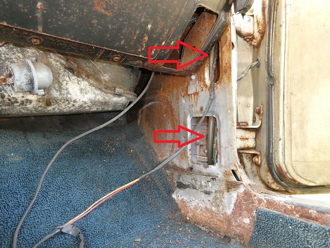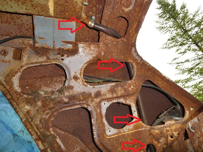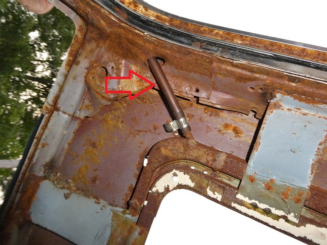 The drain hoses of the rear corners were feed down the C-pillars and were fed through holes drill on the tops of the out wheelhouses, where the water would drain right on top of the tires!