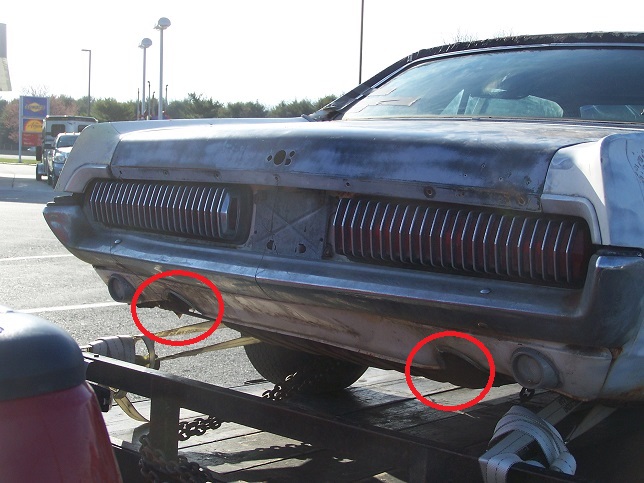 A.O. Smith installed these pipe in pipe exhaust tips. To do this they had to make two big U-cuts in the rear valance, which they dressed up with a pair of chromed U-shaped parts.