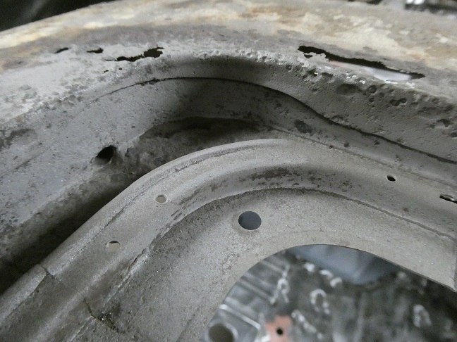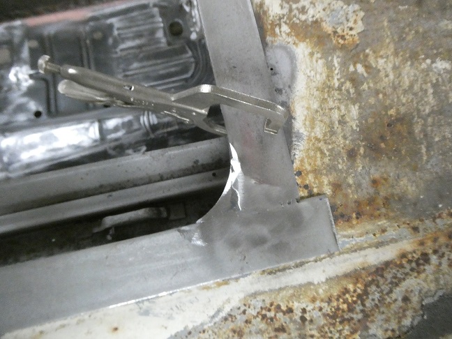 random pinholes at the low spots. These I took care of by drilling the holes out to open them up to size where the metal was thick enough to plugweld. The welds were then ground down smooth and primed with weldthrough primer, to keep them from rusting
