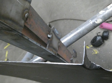 The flat frame I made would not fit tight to the roof without clamps. So, I made a reinforcement out of angle iron to hold the frame’s shape. I first made a box out of angle iron and then welded it to the frame with some short pieces so that it retained