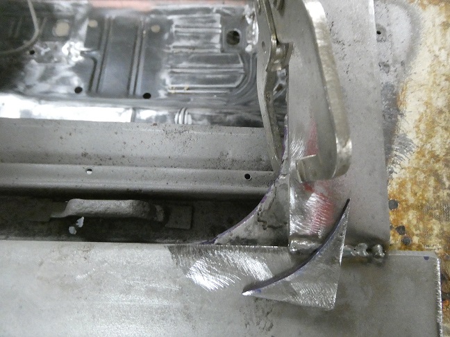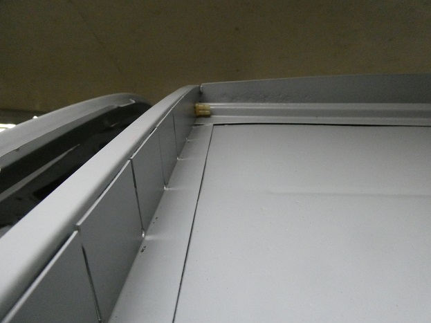 If you enlarge the picture on the right, you can see that the flange is not well formed simply because the roof skin was gonig to be removed. I decided early on to remove the roof skin for priming before permanently folding the rear lip over the roof reinforcement.