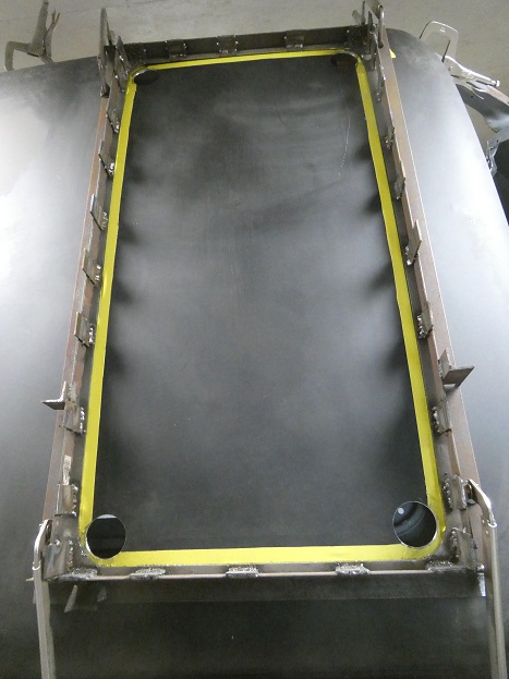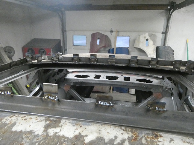 Then with the four sides made, the mating edges were chamfered for welding and then they were gently clamped to the roof being careful not to distort the curvature of the roof. They were then tackwelded together.