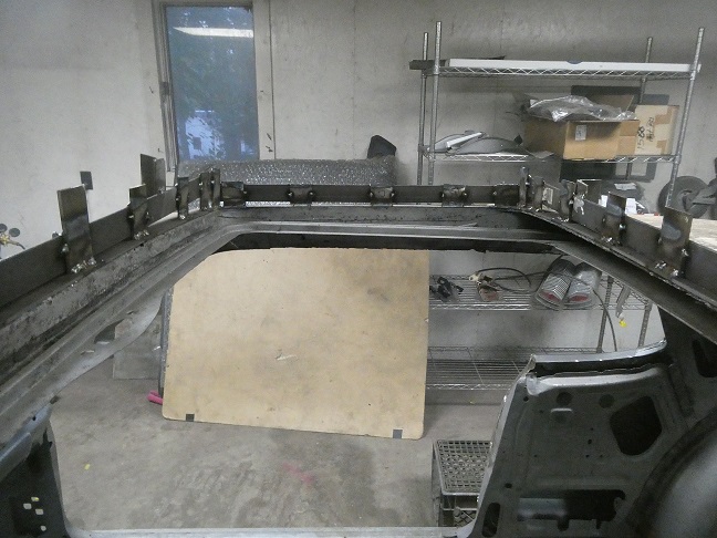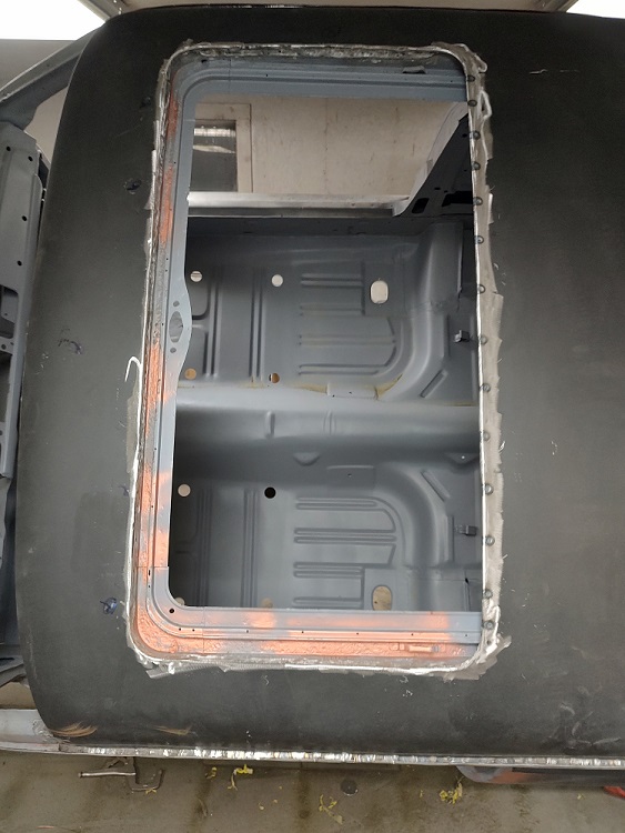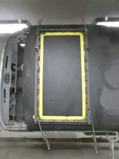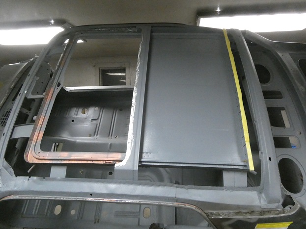The sunroof panel was used to ensure the contours of the sunroof opening were correct before the rest of the opening was welded in place, followed by welding the roof skin to the roof rails and window openings.
