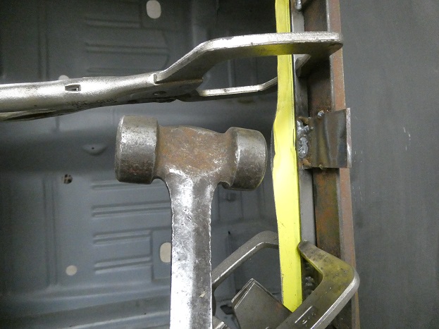 The first thing I needed to do was picture frame the opening. This I built with some flat cold rolled steel stock. 4 pieces in all. They were cut and fitted one at a time. I bent and twisted each one