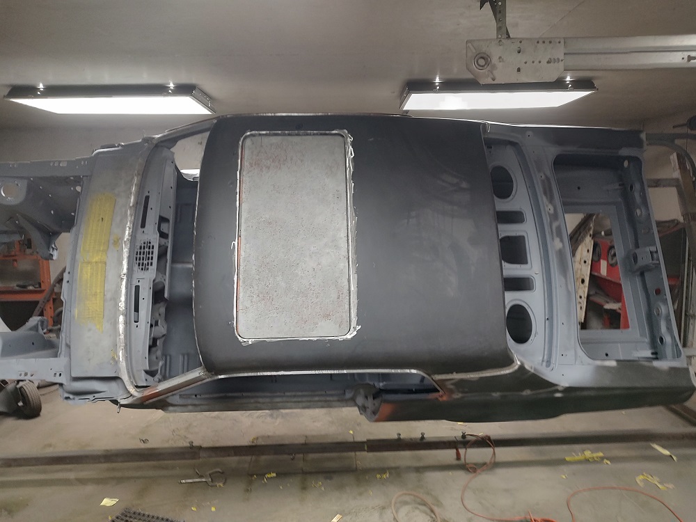 It is very common for the roof skin to rust out on these cars as each one were hand installed in some fashion. The rust was so bad on the roof skin on this car, that the roof could not be saved. Usually people would cut the entire roof off a donor sunroof car to fix thier car. I guess I am