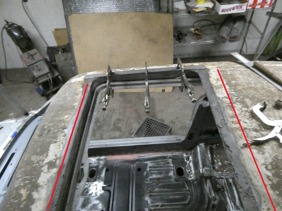 I started one on the right side, which is the shortest and easiest to clamp in place as it only had one bend in it. No twists. The piece was clamped with the inside edge even with the sunroof opening. I then replicated the piece on the left side. The long ones were first cut to length