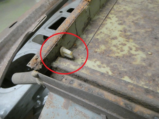 Not evident until the roof skin was removed are these plastic stops for the sunroof panel. The one on the right side is shown here.