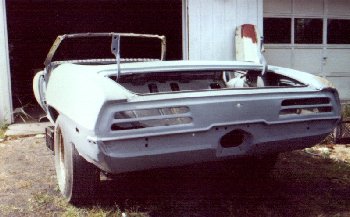 Once sandblasted the quarterpanels and rear decklid area were stripped to the bare metal