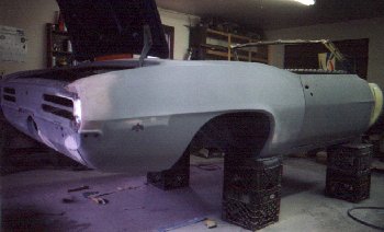 In this rear picture of the primed body you can see the damage to the top of the right