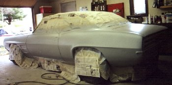 Here's another view of the primed car. All that's left is to unmask it, block sand it and spray the final color.