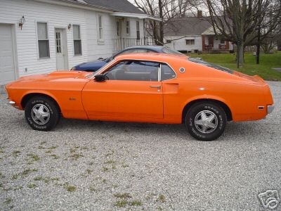 I've been searching for other special order color 1969 Mustangs online since I bought Groovy Green back in 2004. It just so happens that I had actually located the same 4.1 Litre Special up for auction on Ebay in January 2005 and kept the pictures (see below). Back then it was in Indiana and was wearing the correct color orange and black mirrors, though it had been repainted in 1999. From the pictures in 2005, it appeared to still had its buck tag. But by 2014 it was broken off the car with only a partial VIN and no paint code showing. Back in 2005 the 4.1 Litre Special promotion was not heard of, so I thought I was looking at just another special order color car. Not a special promotional car. |