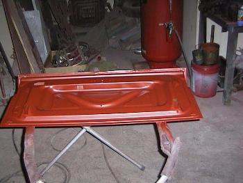 The original trunklid was way too far gone to repair. The lip at the bottom of the underside was totally rotted away.