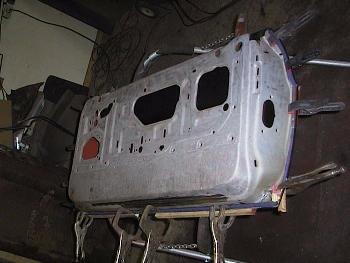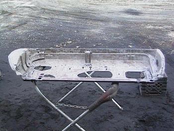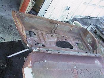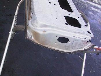 Removing the skin was pretty easy. I took a grinder and ground all the way around the perimeter were the skin was folded over. I popped the two spot welds that were located on the inside at the top on each end with a chisel. I then took a torch and melted off the braze at the tops that the factory originally used to tack the skin in place.