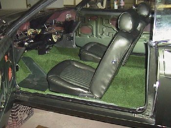 It looks just like new here. The only thing missing here is the lights that go in the sail panels. Though you might not be able to tell from the picture there are 5 different shades of green in the interior of this car: the headliner, rear trim, seat outer fabric, seat center sections and of course, the carpet, which kind of looks like grass. This is a very interesting color scheme.