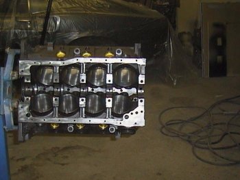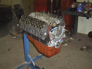 Here's the engine partially assembled. The heads where shaved and received new valves and springs.