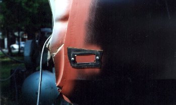 welded in a new one. With that done, I primed every surface. Shown here in mid-process, the red is a redoxide