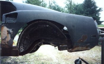 Here is a view with the outer wheelhouse removed. It should be noted that the lower rear section of the original quarter was left in tact. This is needed to correctly align the new outer.