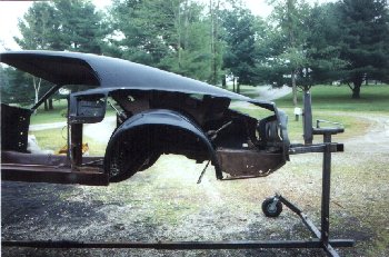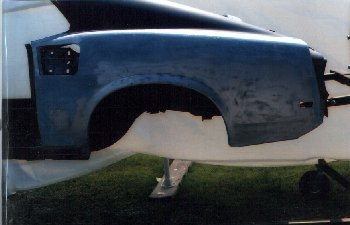 At this point the new outer wheelhouse and lower trunk extension were welded in place.