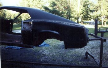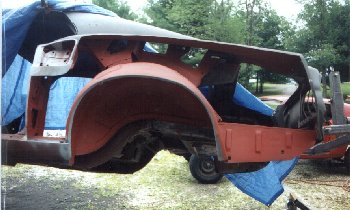 Here is the left rear quarter in its original state. There was a badly repaired jamb in the front and ,of course, the typical rust holes in the rear lower section.