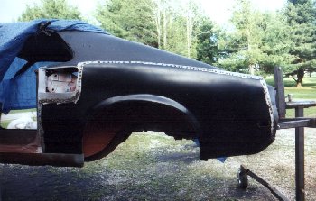 After completing these quarters I replaced a pair on my cousin, Kris Luce's, 1970 Mach I as payment for the rotisserie. It took me 24 hours to replace his quarters, though I did not reproduce the lower section on his. You can see Kris's car here Kris's Website. Look for Jezabelle.