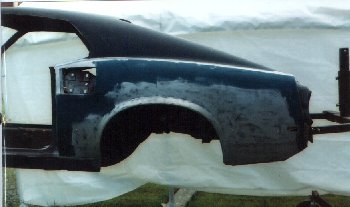 With a thick coat of epoxy primer the last quarter panel work was completed.