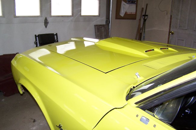 Here is installed. Its one of my favorite features of 69 Mustangs. All 69's had them except for the Boss302's and of course the Shelbys which had functional scoops.