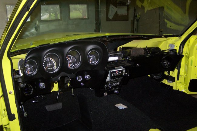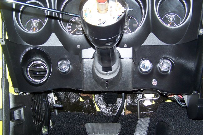 The first thing that goes in is the kick panel vents followed by the left section of the firewall insulation. The dimmer switch is then