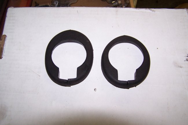 Because of this they had to use a special plastic collar to cover the gap at the top which was created by the shims. In this picture you can see both styles. The one on the