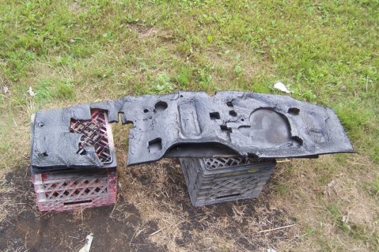 Then the large section of the firewall insulation goes in. It is only held in with two rubber plugs. The best way to get them in is to pull them out through the engine compartment with a pair