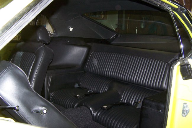 out the outer seat belts when installing the seat bottom or you will have to remove the seat to reach them. In this picture the interior in done. It looks and even smells new.