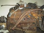 Here is the engine all together with the breather removed to show the heat stove pipe connections. Notice the alternator ? The redish stripe with the stampings in it