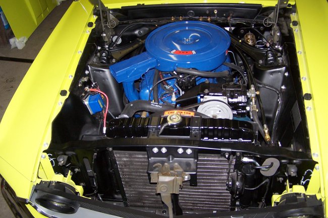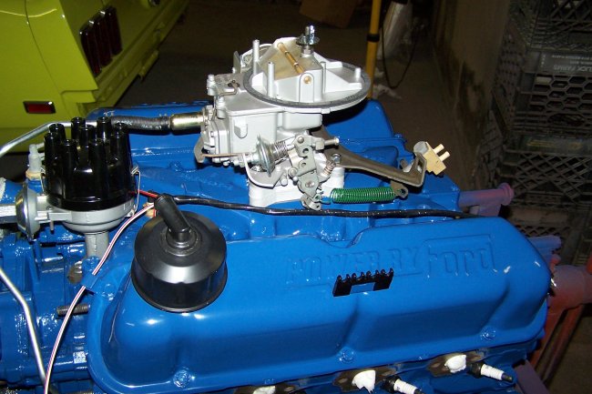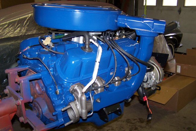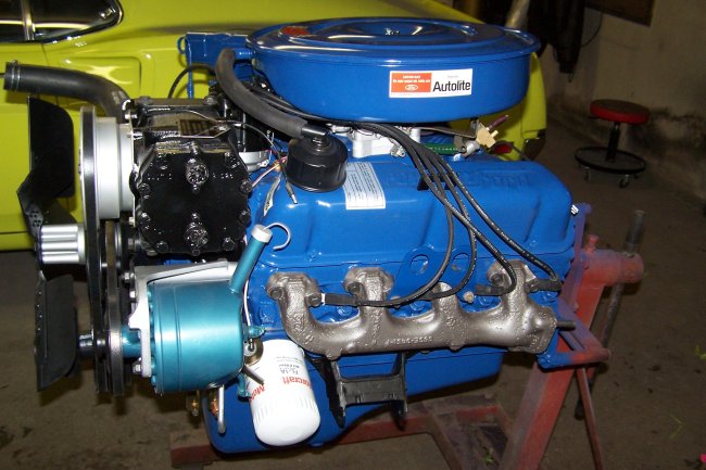 Here is a view of the left side of the engine. Notice that the oil filter is by Motorcraft ? To be concourse correct the filter must be Autolite brand or at least be painted engine color (since Ford originally