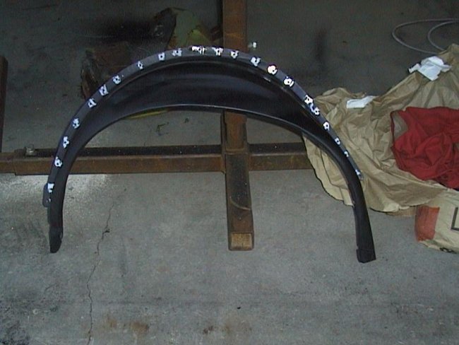 Once the outer wheel well has been trial fitted and adjusted (and believe me, "adjusted" is understated) a couple dozen holes must be drilled along the parameter of the outer wheel well's standing seam. The locations of the hoels should be