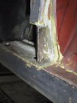 since the piece needs to be welded back in place. Then the rusted area is cut out and a new piece is fabricated and welded in. In this picutre the new pieces is already