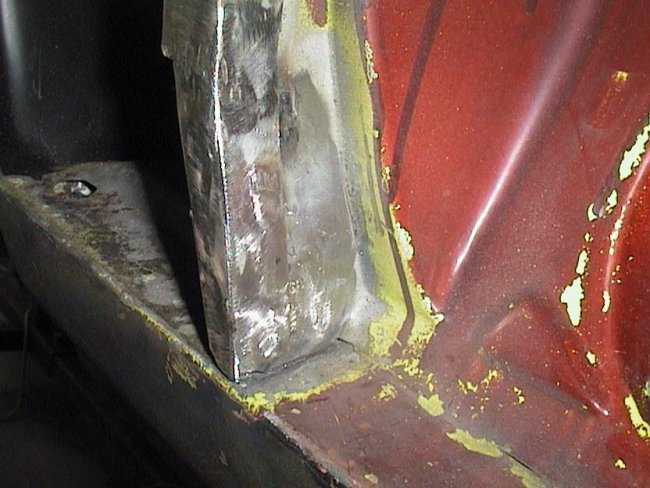 welded in and the weld has been ground down. Sorry, no pictures on how to do this, but as you read deeper into these restoration pages you'll see how to figure it
