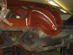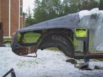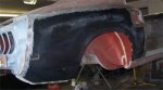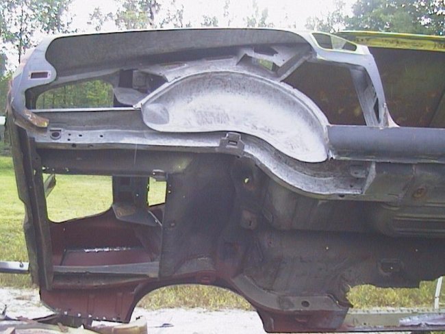 In this picture the remainder of the outer wheel well has been removed and lower trunk extension has been cut off. Prior to sandblasting the wheel well undercoating