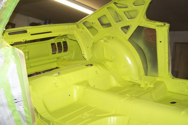 In this picture you can see the interior rear section after priming has completed and the dust had settled.