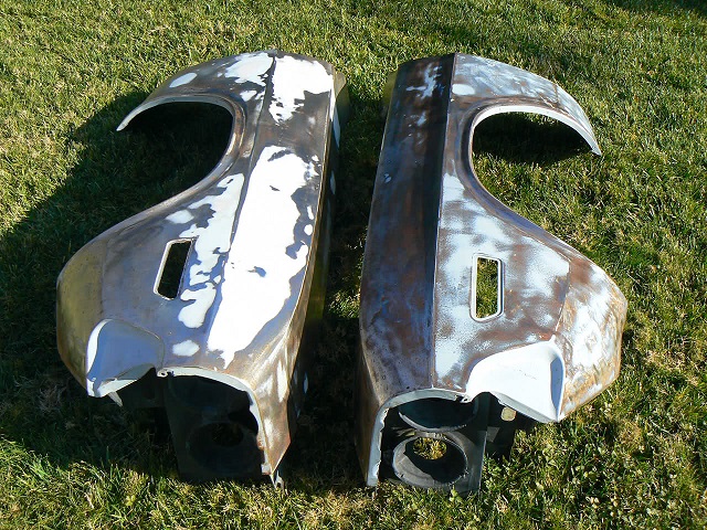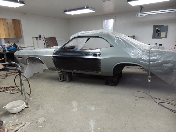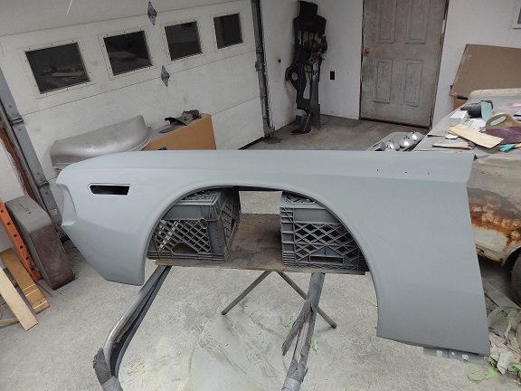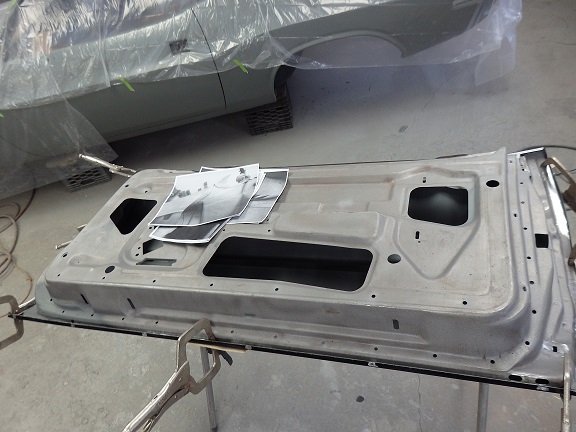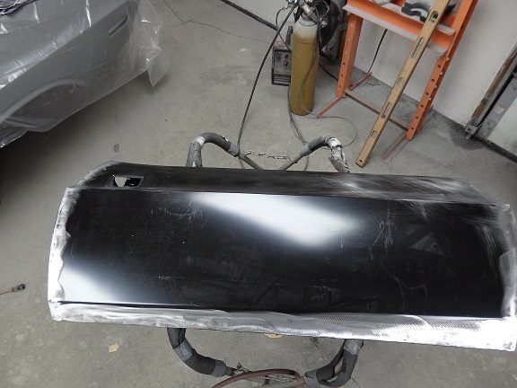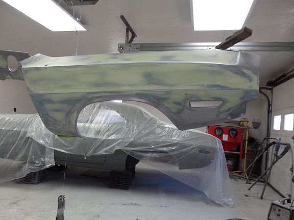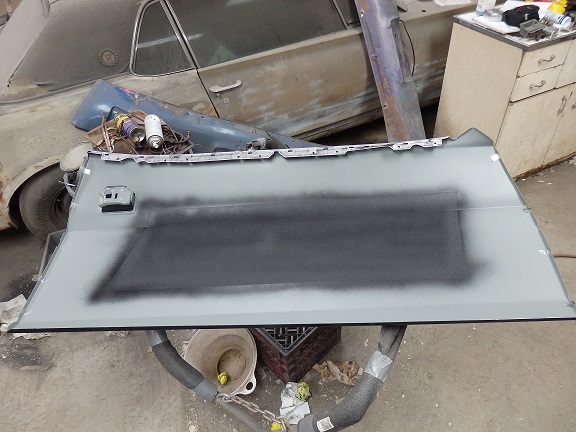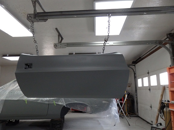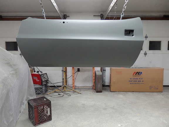 193) Here it is with 3 coats of DP40LF Epoxy primer and ready to install on the car. The hinges only needed to be sandblasted and primed. I removed the springs from the hinges primer to priming. I gave them 1 coat with the hinges closed and another coat with the hinges opened.