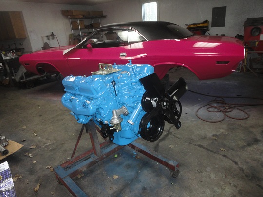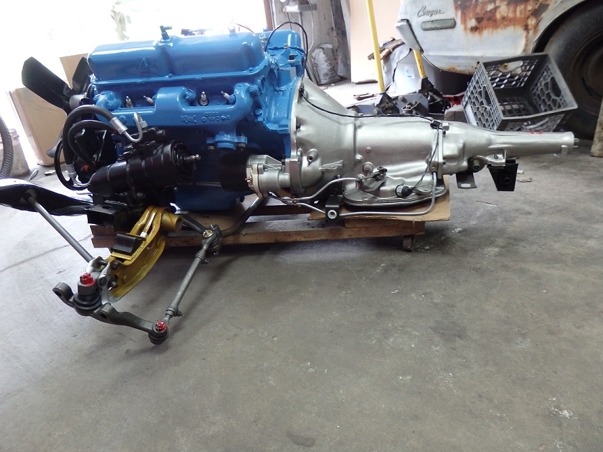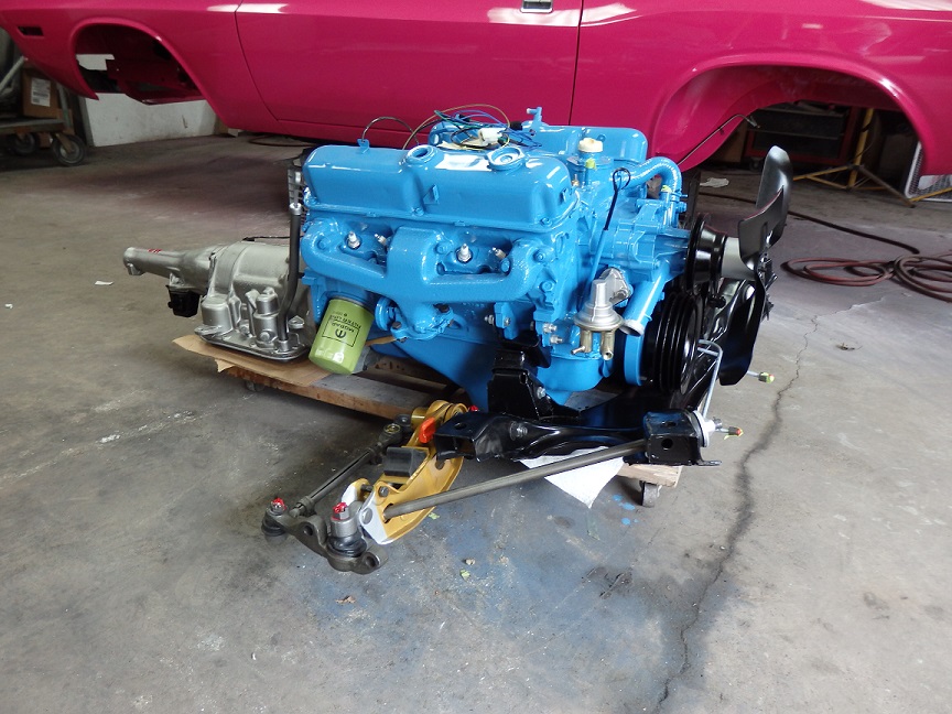 356) Before the engine came off the stand I installed a new water pump, new engine mounts the pulleys and the power steering pump which was restored. Though the