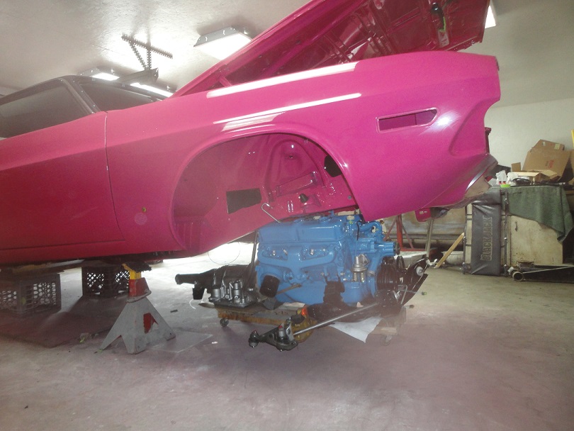 358) Before installing the engine, it's a good idea to get as much of the engine compartment components installed as possible. Remember, the steering column should not be installed until after the engine is in.