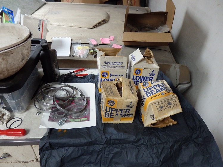 382) The parking lamps needed new pigtails and some freshening up. I bead blasted the housings and painted them. To get the original yellow chromate look I just misted on some of the leftover Quasmoline that I used