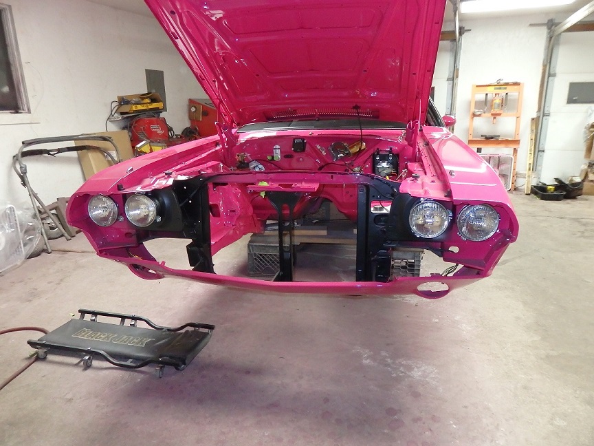 first picture you can see the grill surround and the new repo headlight bezels prep'd for painting.
