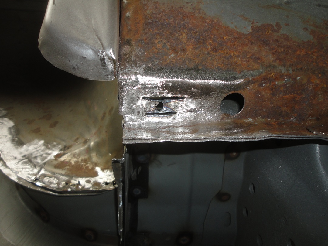 97) This picture shows the pinch welds at the rear of the outer wheelhouse where it meets the trunk drop off.