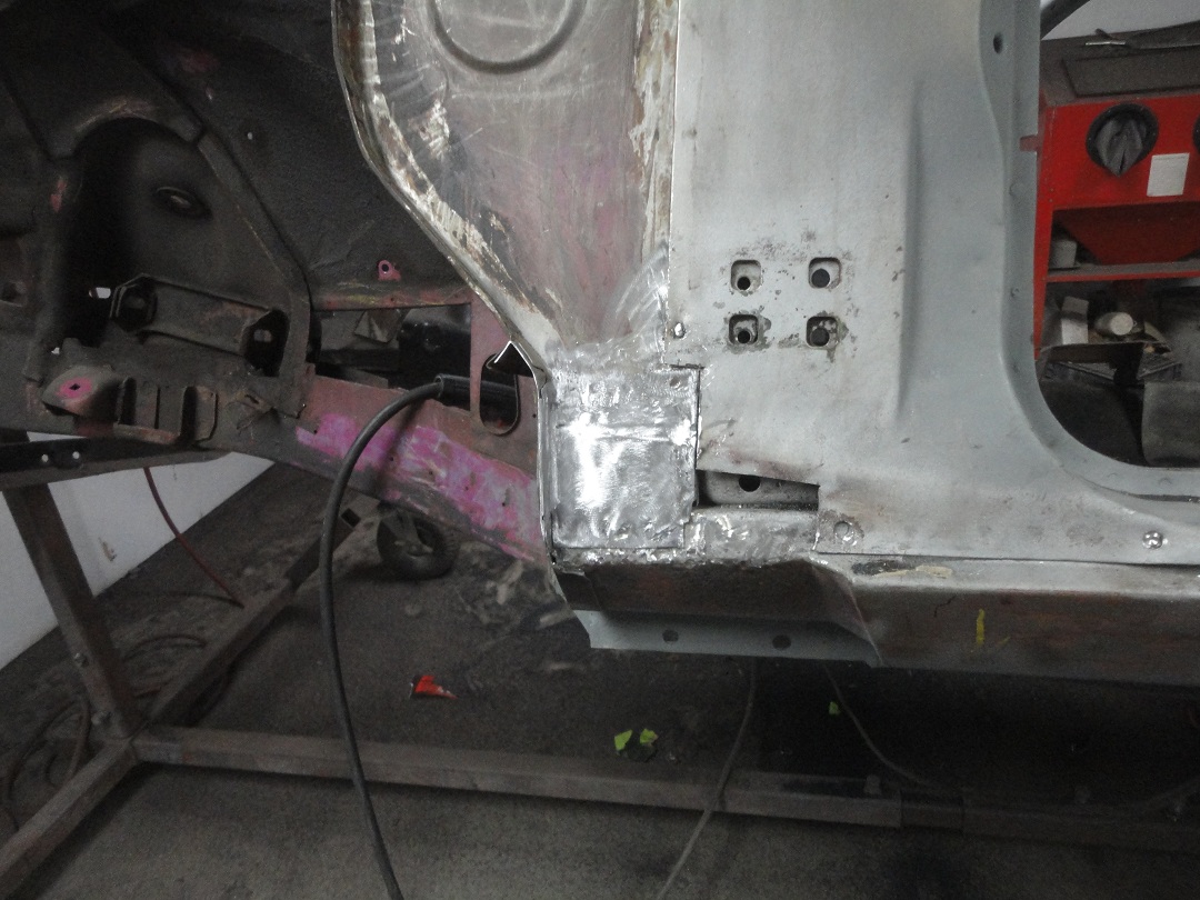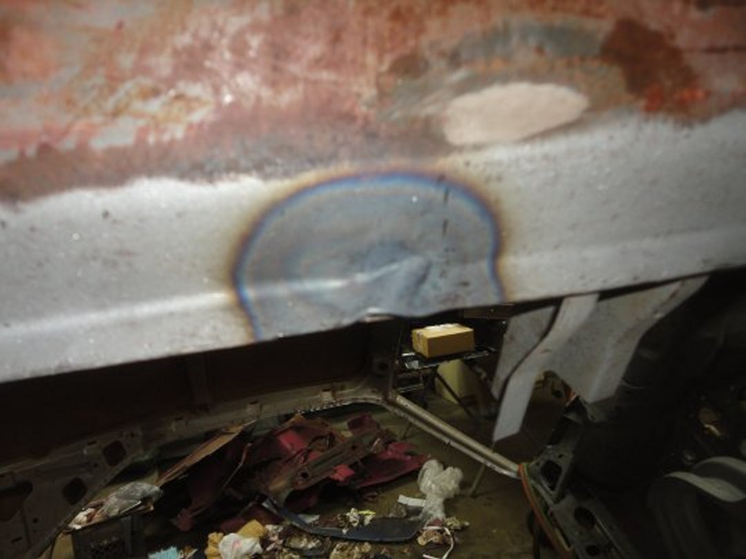 14) There was a rust hole at the main harness firewall connection. I welded in a new piece larger than I needed.