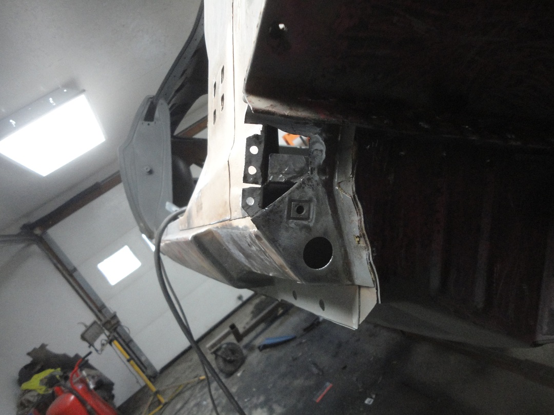 11) I bought a used left rear frame rail section off e-bay for $100 to fix the tail end of the frame rail. I used a section of it to form a
