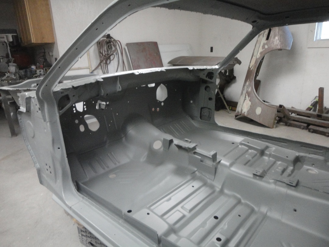 160) Here is a final shot showing the trunk. I made sure to drill the trunk hanger holes and fit the trunk hanger plate prior to priming. Since the car is single exhuast I only had to do one side.