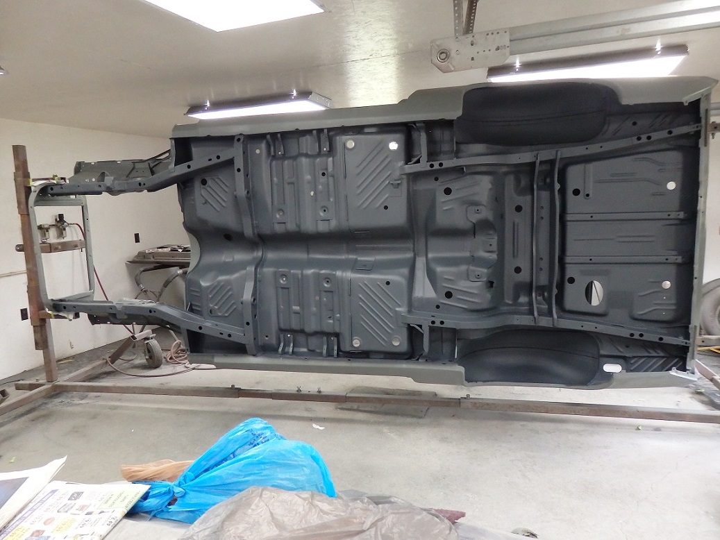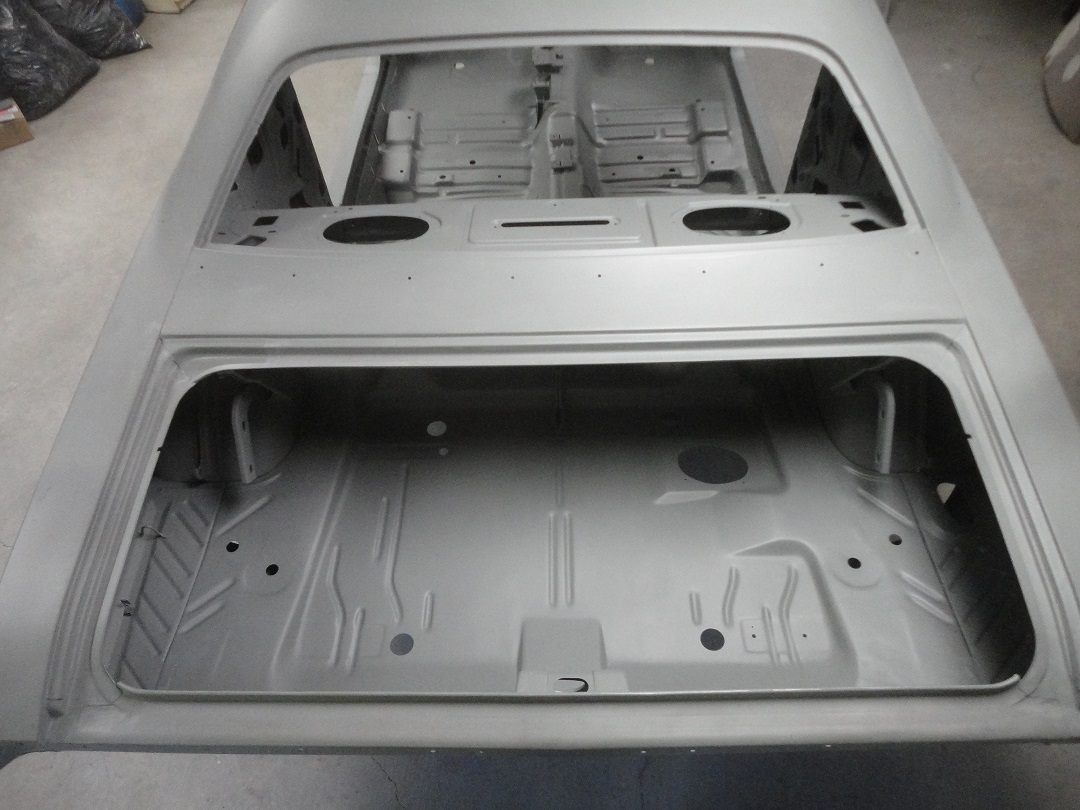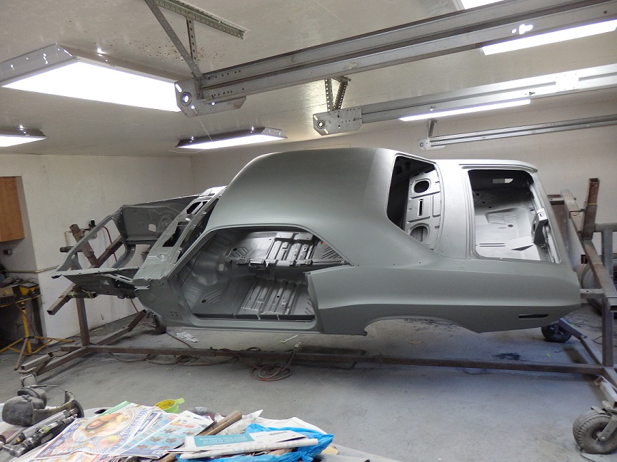 155) Here is the completed shell, ready to come off from the rotisserie. I primed the shell in four different stages. In order: Engine Compartment, Interior, Exterior and undercarriage.