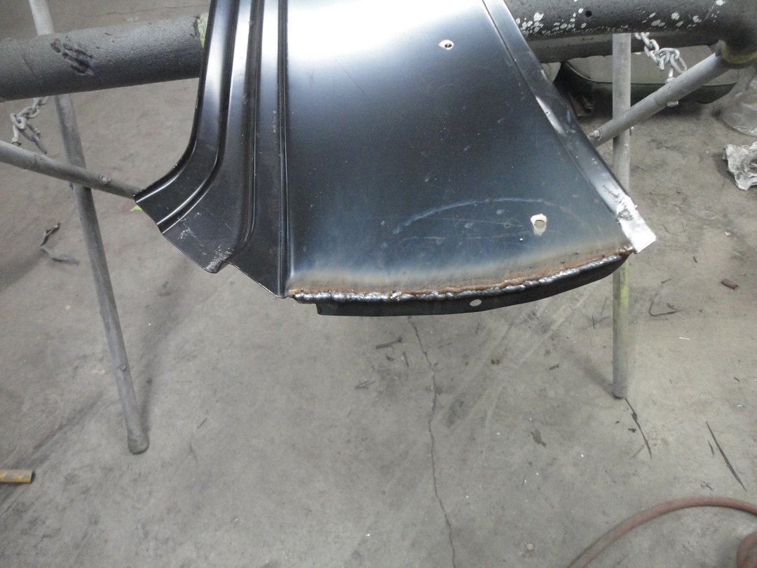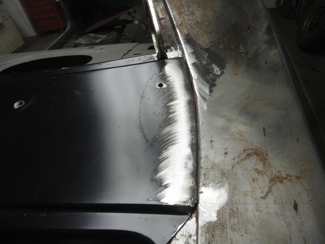 69) The bead gets welded down to produce a good fit to the quarter panels. Looking pretty close to finished in this picture.