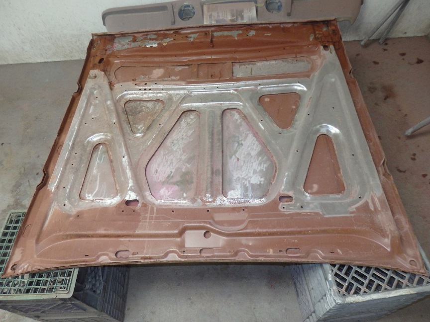 The original trunkl id was long gone. The car did come with this trunklid installed on it. The B-body trunklids are really springy, I had to chemical strip it top and bottom.
